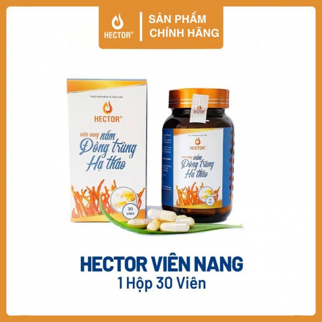 Viên đông trùng hạ thảo Hector với 100% thành phần là đông trùng hạ thảo Cordycep Militaris được sản xuất tại Việt Nam theo quy trình khép kín chuẩn quốc tế. Nấm đến tuổi thu hoạch sẽ được kiểm định hàm lượng dược chất trước khi đưa vào sản xuất thành phẩm viên nang 100% đông trùng hạ thảo.